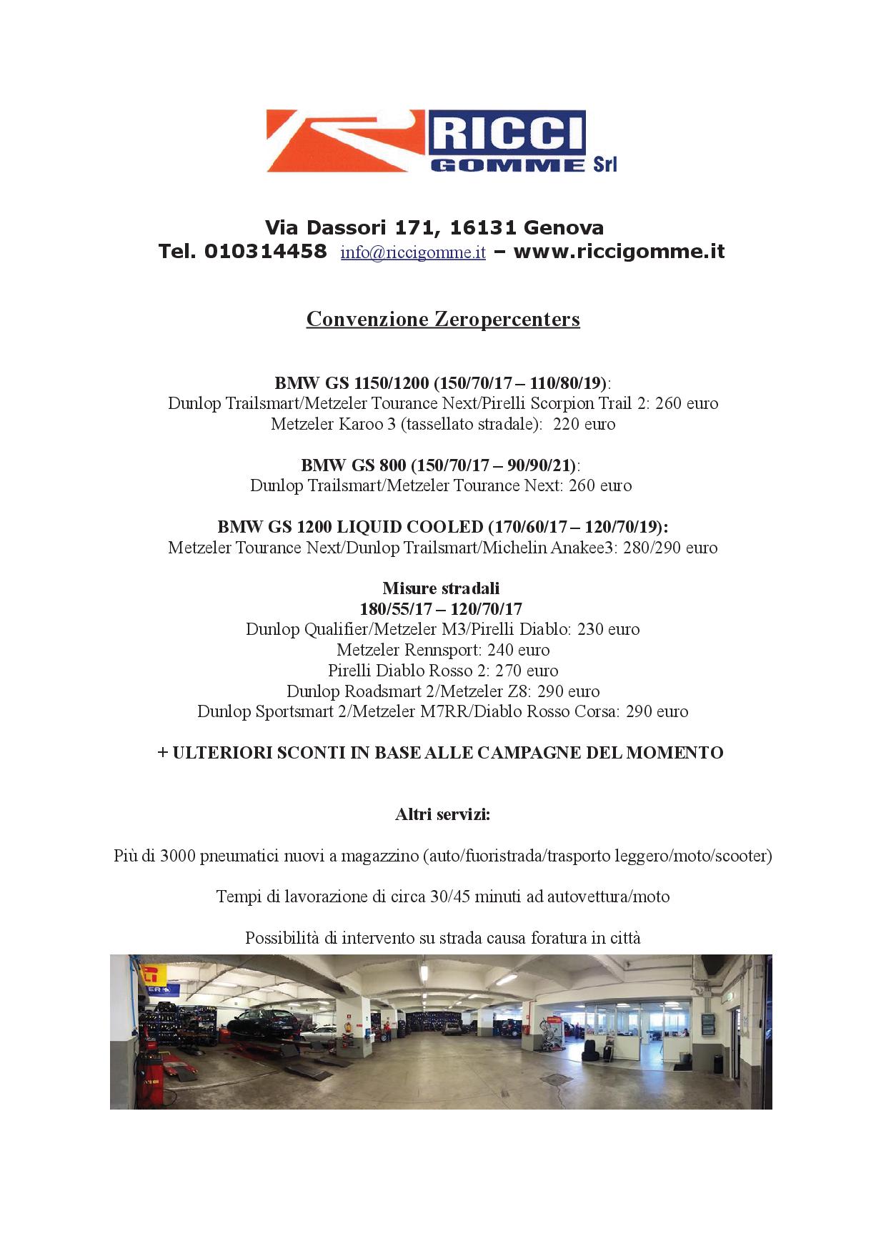 Per i liguri ed in particolare per i genovesi abbiamo fatto una convenzione con Ricci Gomme che dietro presentazione della tessera praticherà prezzi particolari a seconda delle campagne promozionali del momento (vedi esempio in locandina)